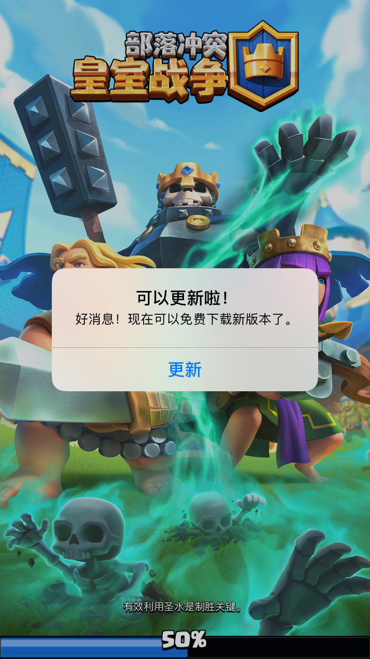 点击之后,游戏会提示你更新,点击后跳转到App Store更新,更新后启动游戏完成新手教程后注册Supercell ID。