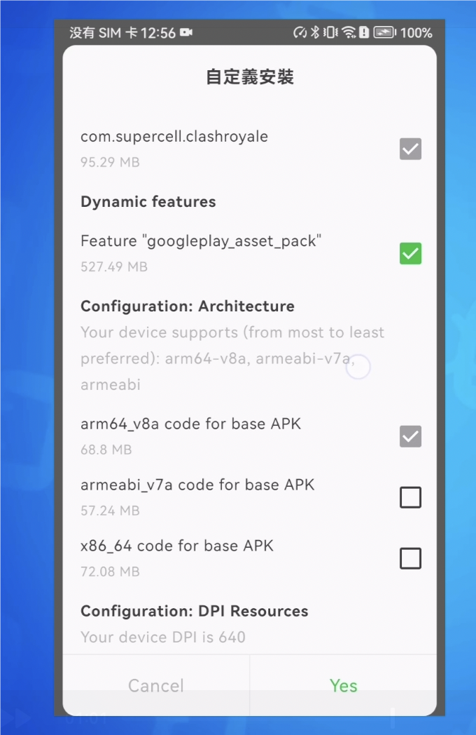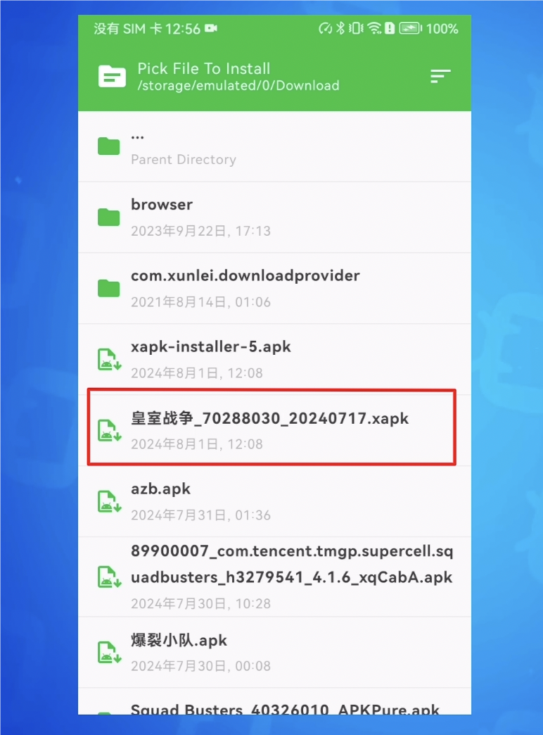 首先将其安装至手机并打开,然后选择已下载的皇室战争最新安装文件 xapk。