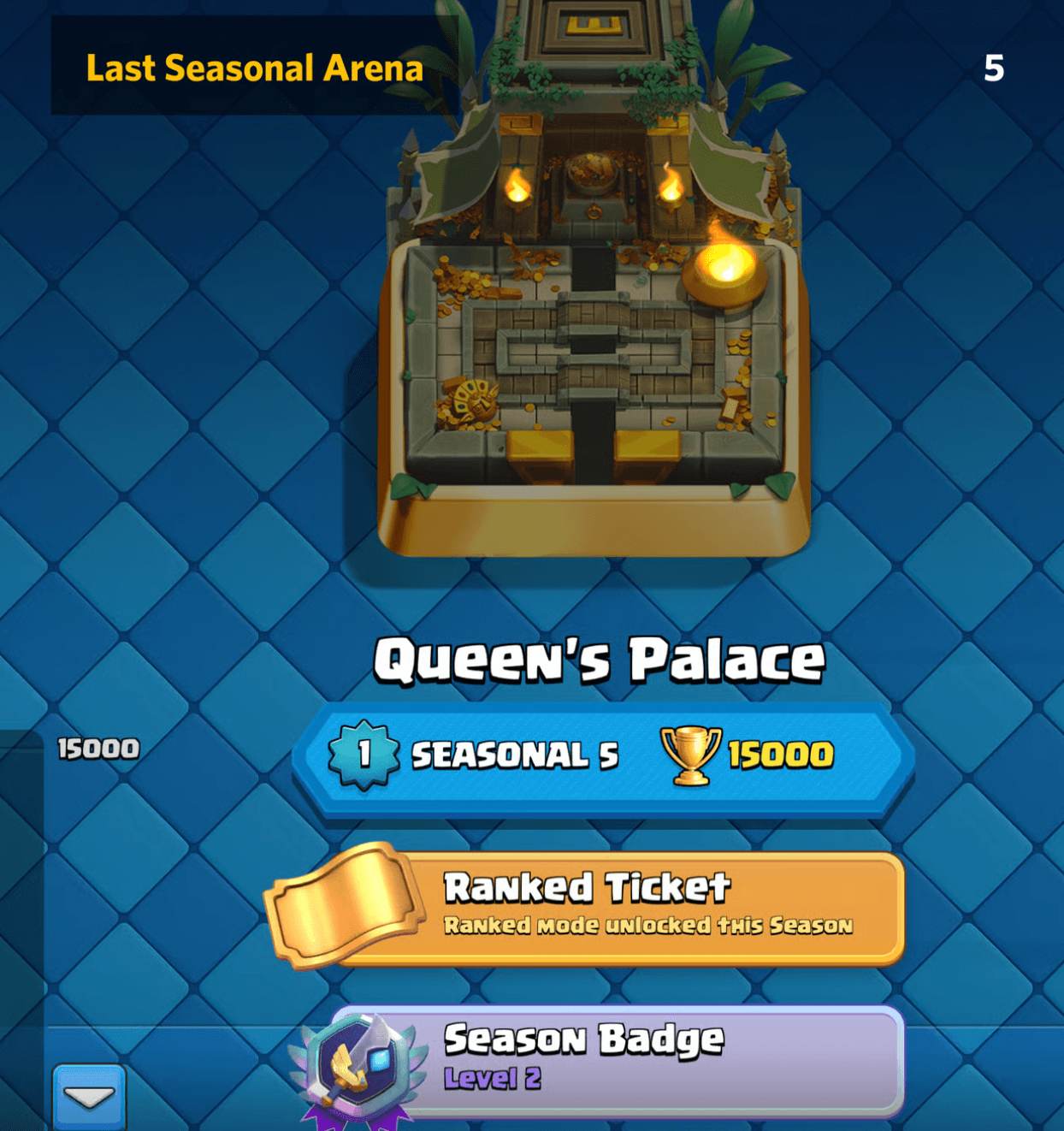 - 在本赛季的季节性竞技场中达到 15000 杯